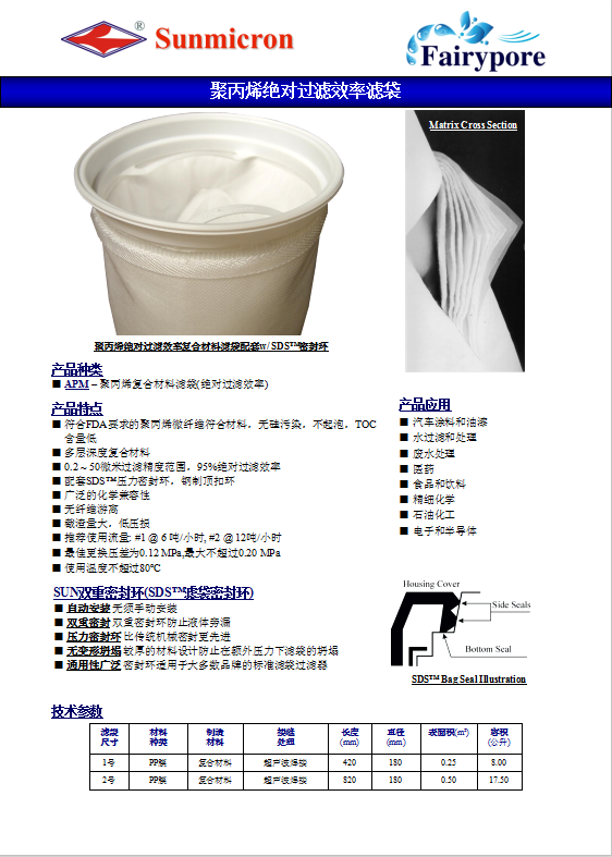 聚丙烯绝对过滤效率滤袋